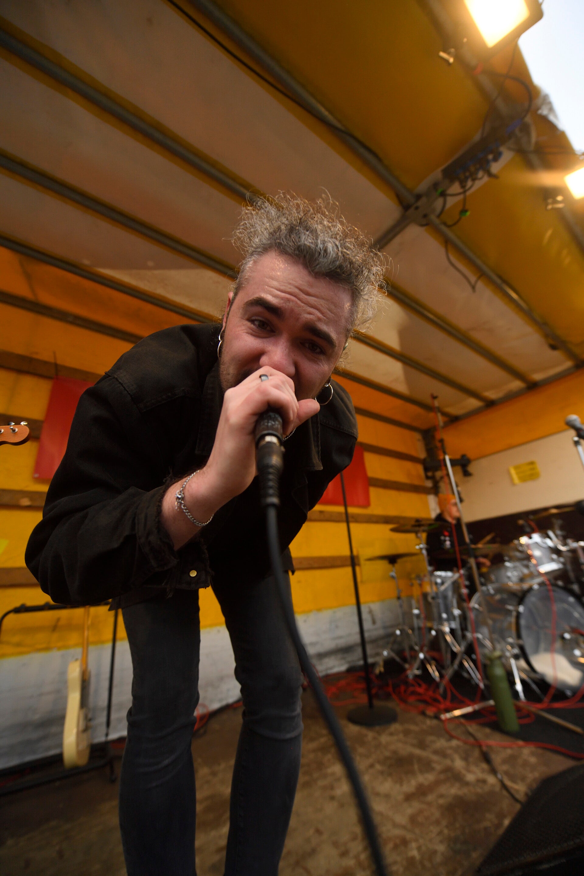 LKW. Und der hat ordentlich gewackelt. Nicht nur ein bisschen - wirklich gewackelt. Immer dann, wenn Martin, unser Sänger, sich bewegt hat, hat der ganze Truck mitgemacht. Es war nicht nur ein Beben, sondern ein richtiges Schwingen der gesamten Konstruktion. Zum Schluss hing sogar ein Kabel halb vom Bühnendach herunter, einfach weil Martin zu wild war.
