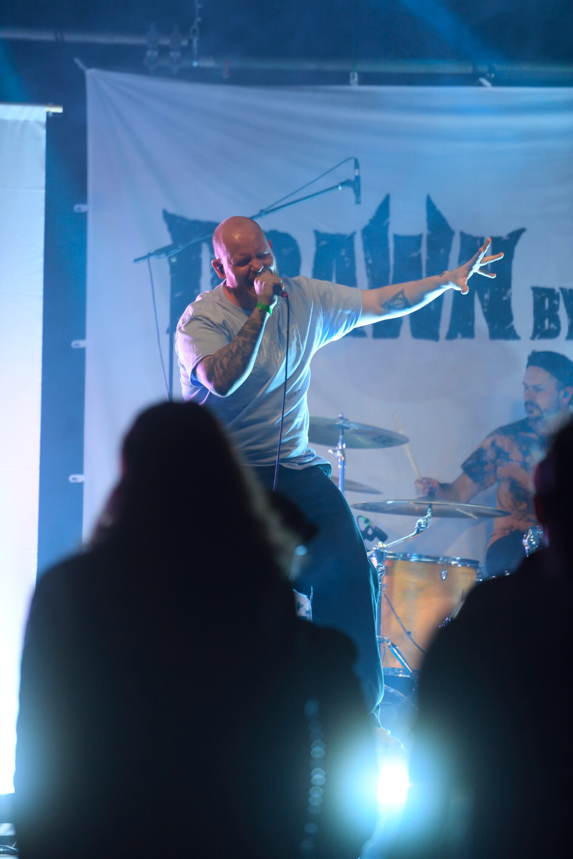 Danach übernahmen Drawn by Evil. Die Band knüpfte nahtlos an die Stimmung an und brachte ihren eigenen Sound und ihre eigene Dynamik auf die Bühne. Vor der Bühne wurde es zunehmend wilder und man merkte, dass der Abend jetzt richtig Fahrt aufgenommen hatte.